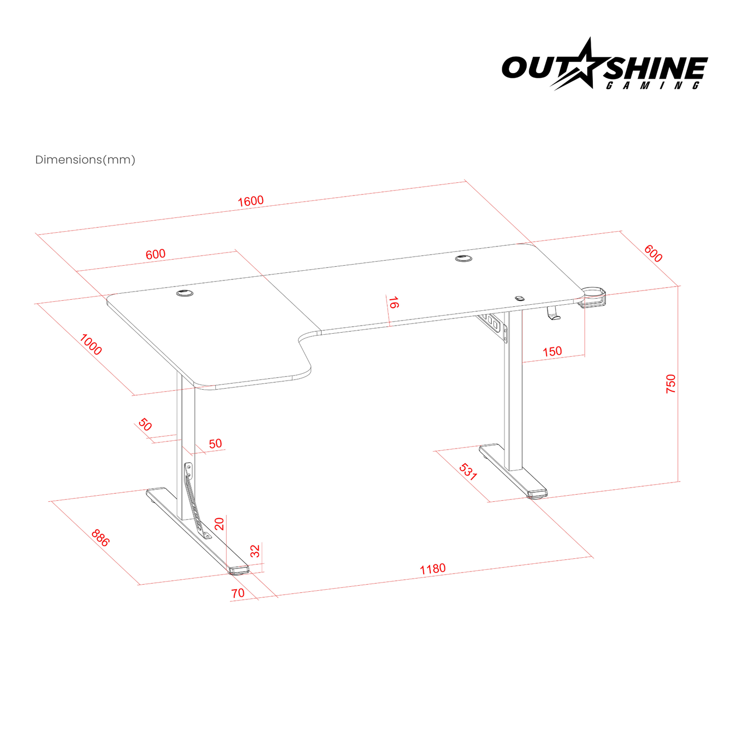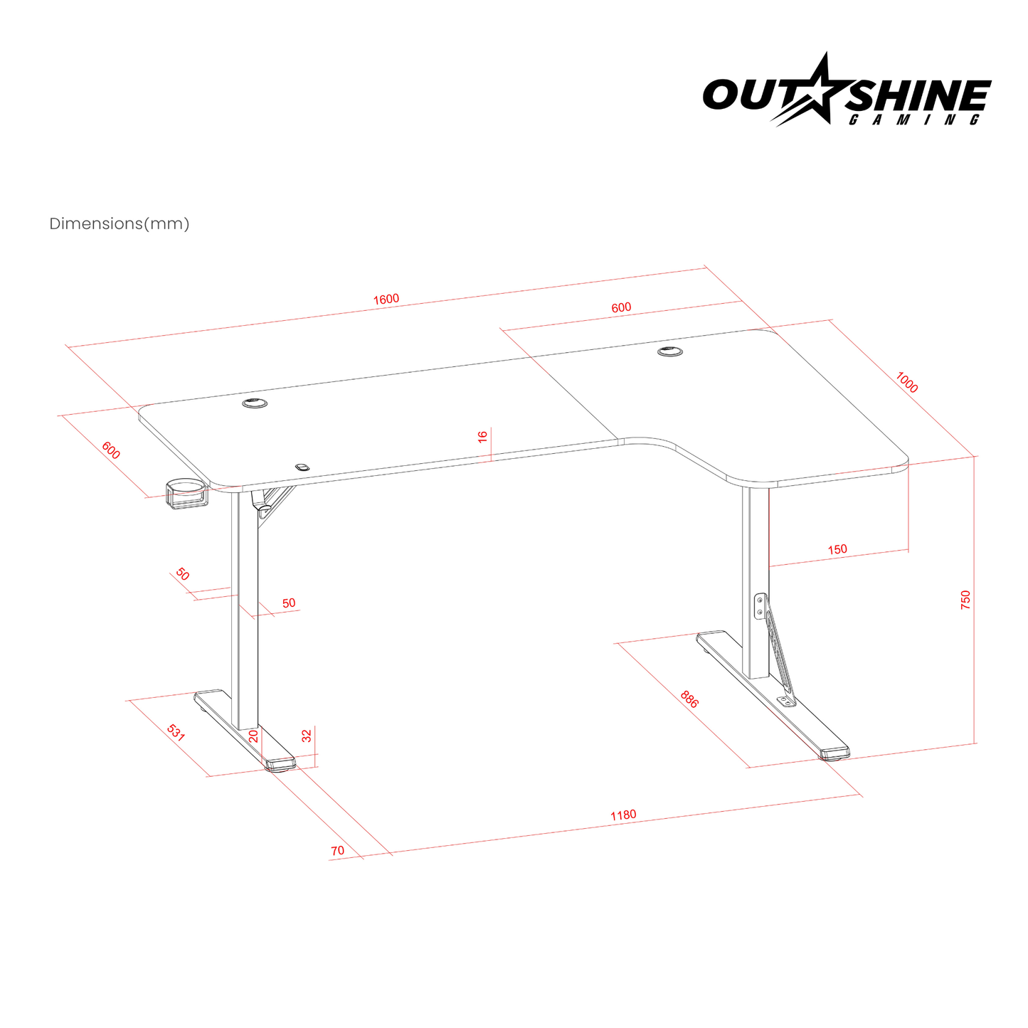 Measuring an expansive 1.6 metres in width and 1 metre in length, our textured carbon fibre desktop gives you more space for your must-have gaming essentials, with a scratch-proof, water-resistant foundation made to withstand anything you throw at it (both literally and figuratively!).